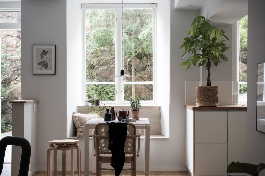 Liten tvåa med studiokänsla och egen ingång i Linnéstan möblerad från scratch. Foto Maria Sahlander För Bjurfors Göteborg