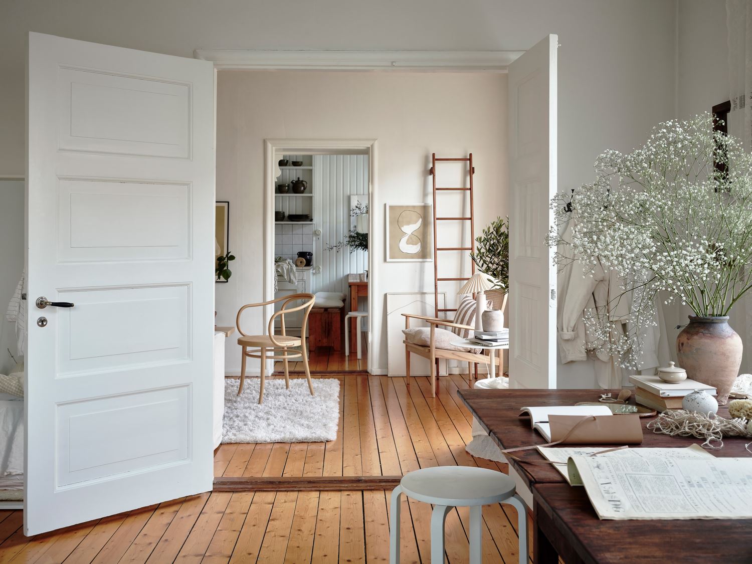 Ett antal kvarlämnade möbler fick sätta känslan för stylingen.