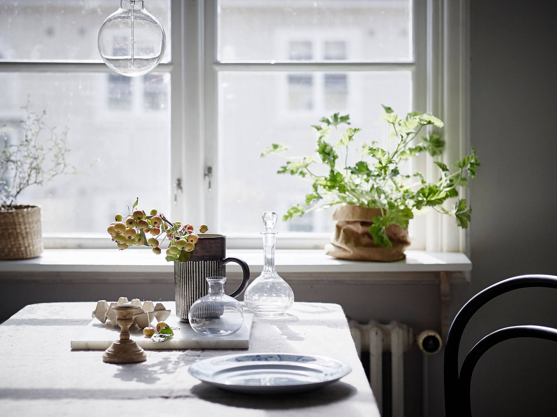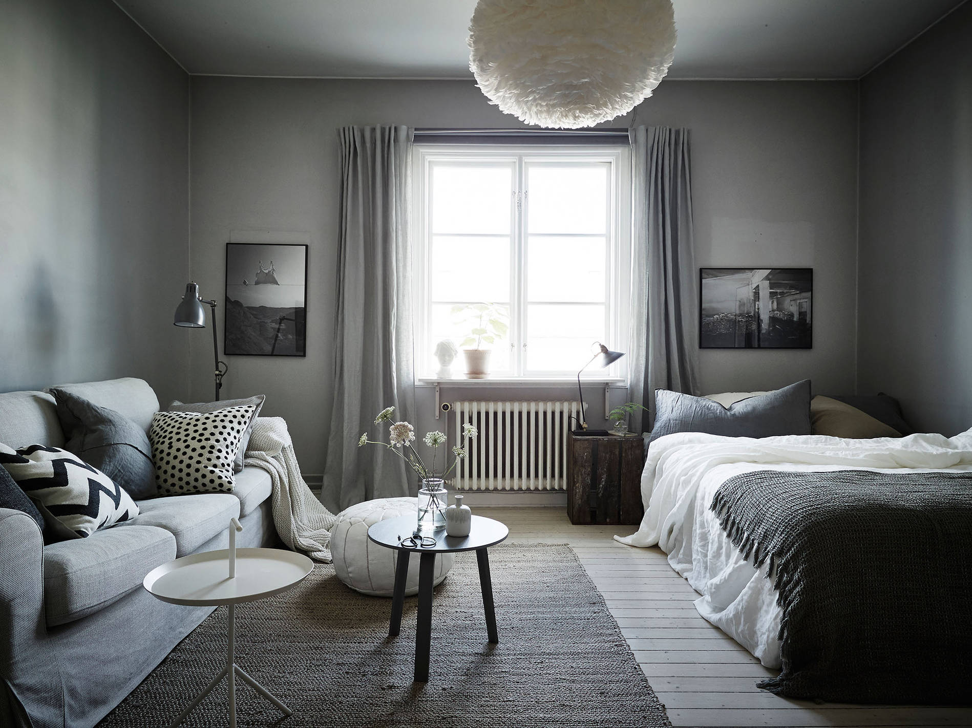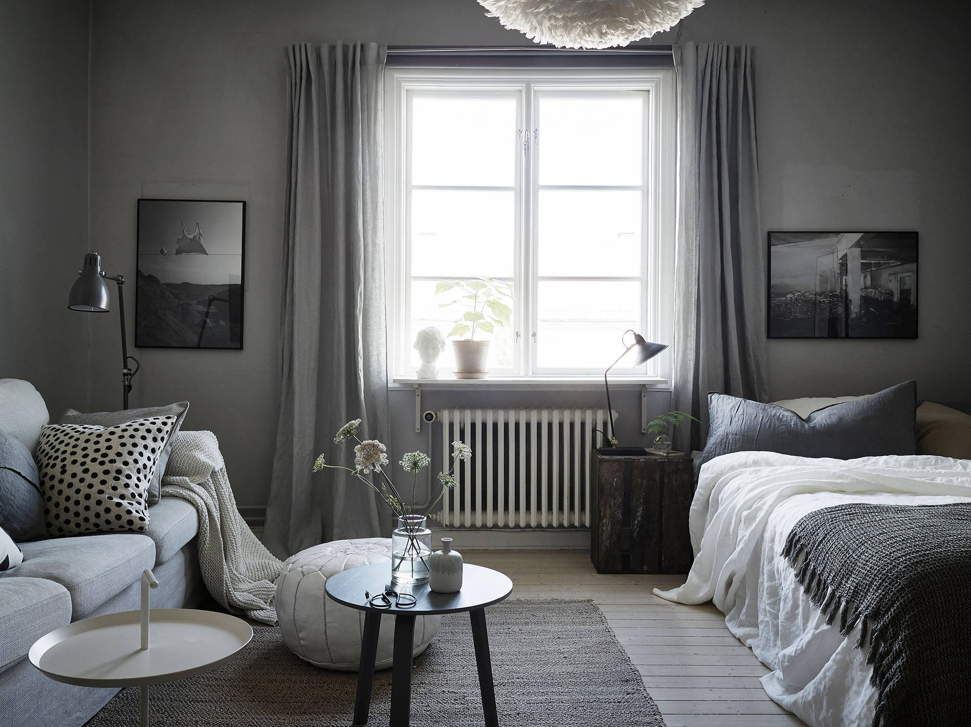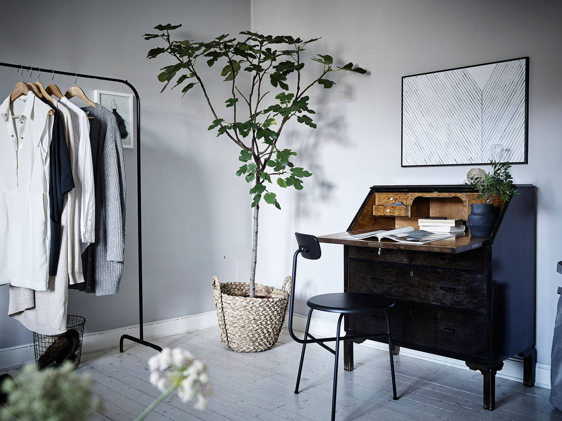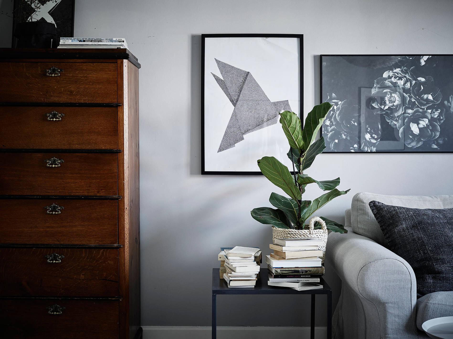 Halvstyling av lägenhet i Kungsladugård där en ommöblering gjordes och sedan komplettering av tavlor, textilier och en del småmöbler samt detaljer och växter.