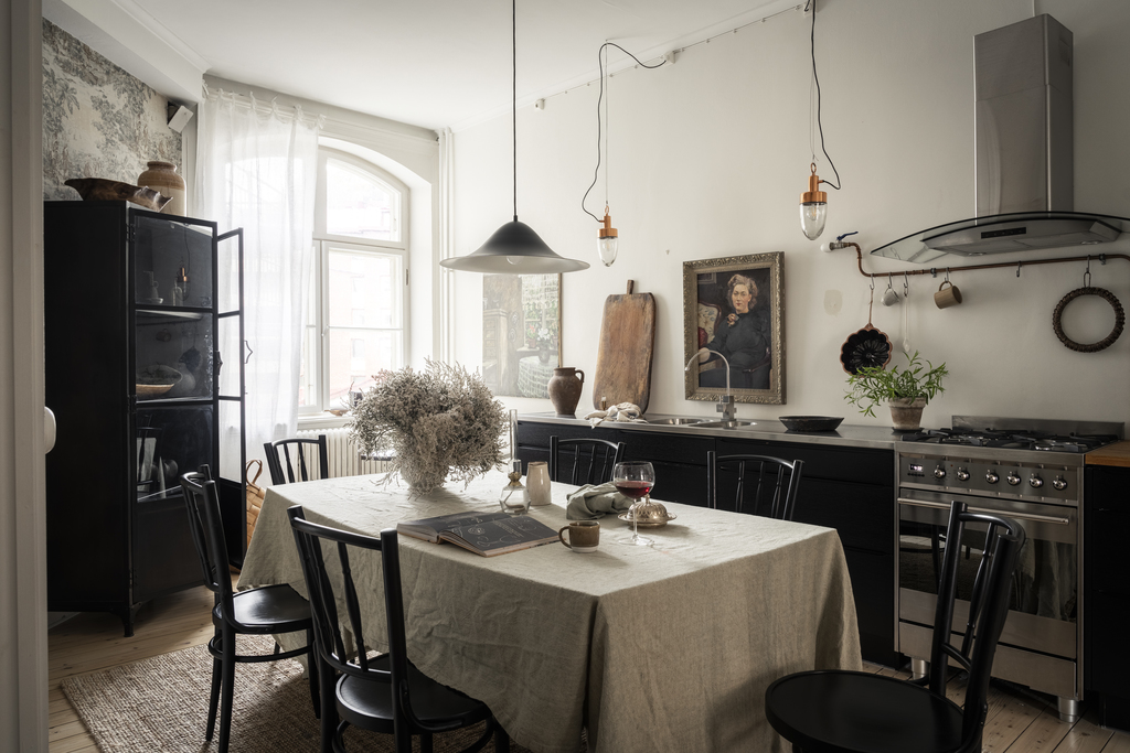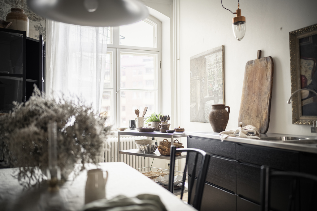 Fantastisk 1,5:a i Linné som hade en del grundmöbler innan vi tillförde resten. Målsättningen var att skapa en känsla som rimmade med det vackra huset.