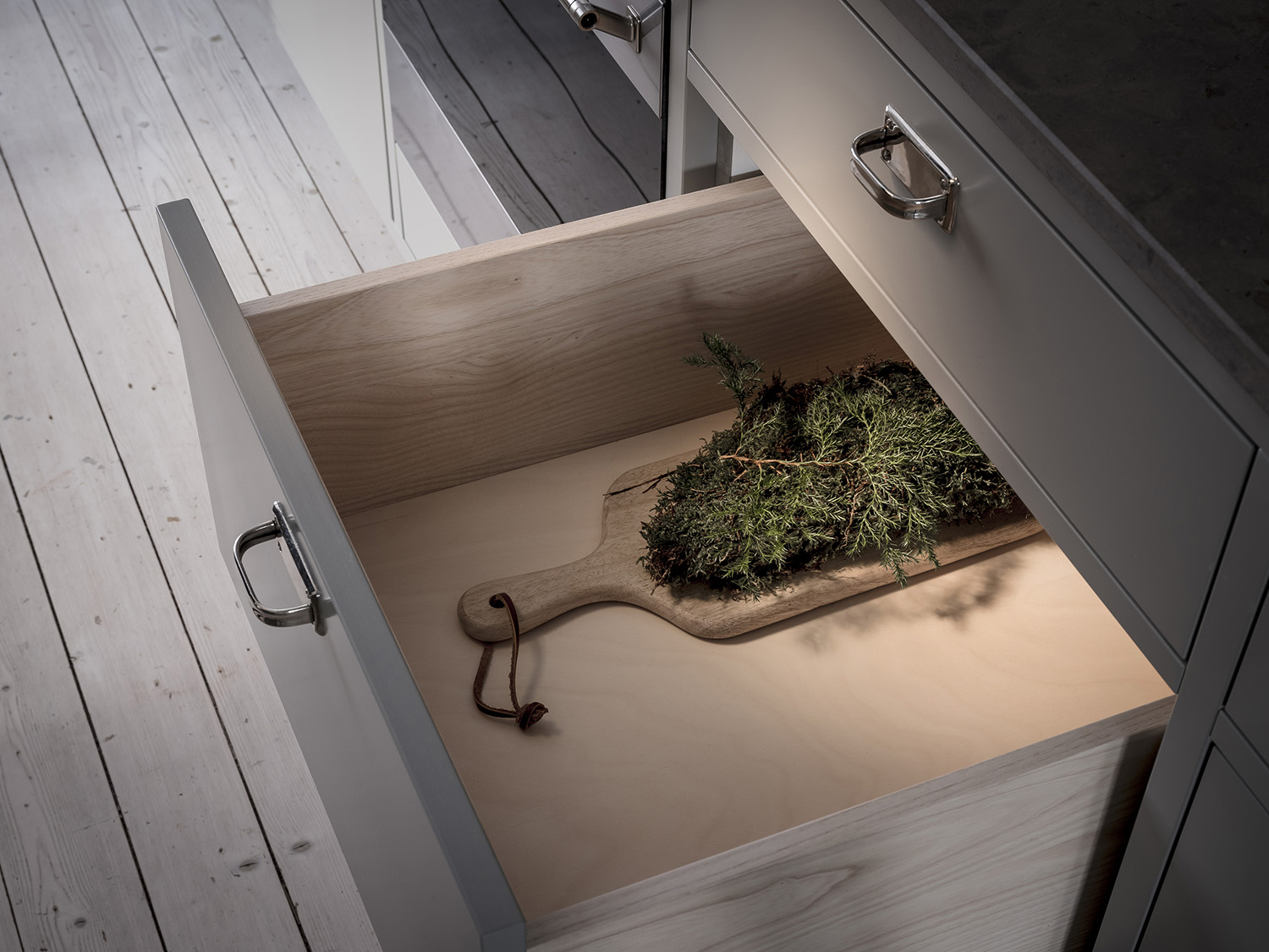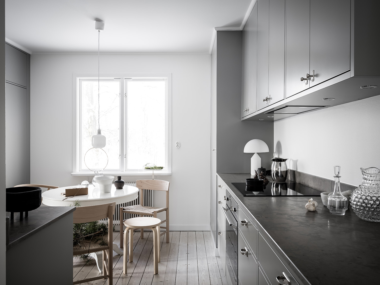 Vårt projekt, ett vackert, precis färdigbyggt grått kök i charmig 1940-tals villa, fick en tolkning av oss med inspiration av just den nordiska naturen.