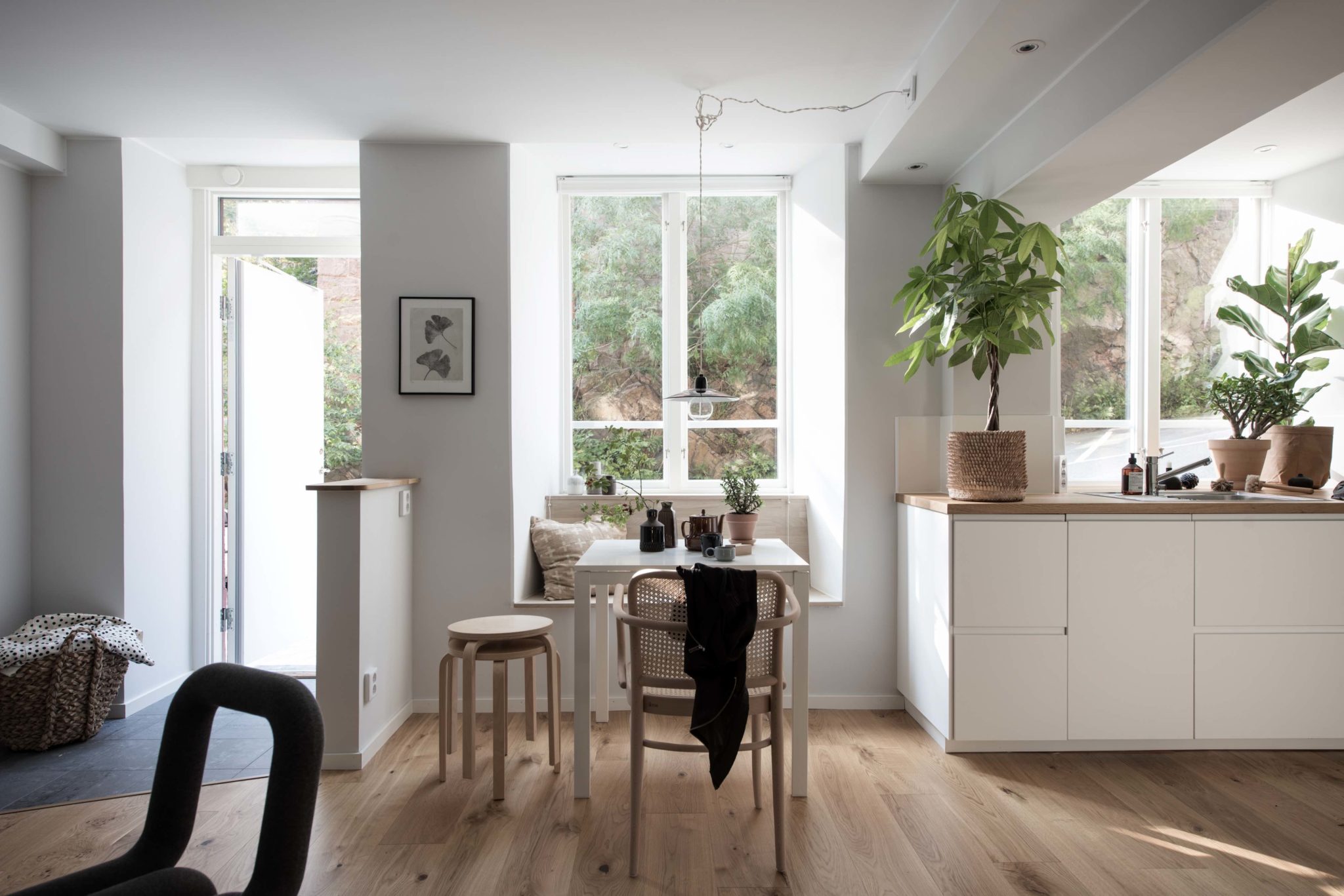 Liten tvåa med studiokänsla och egen ingång i Linnéstan möblerad från scratch.