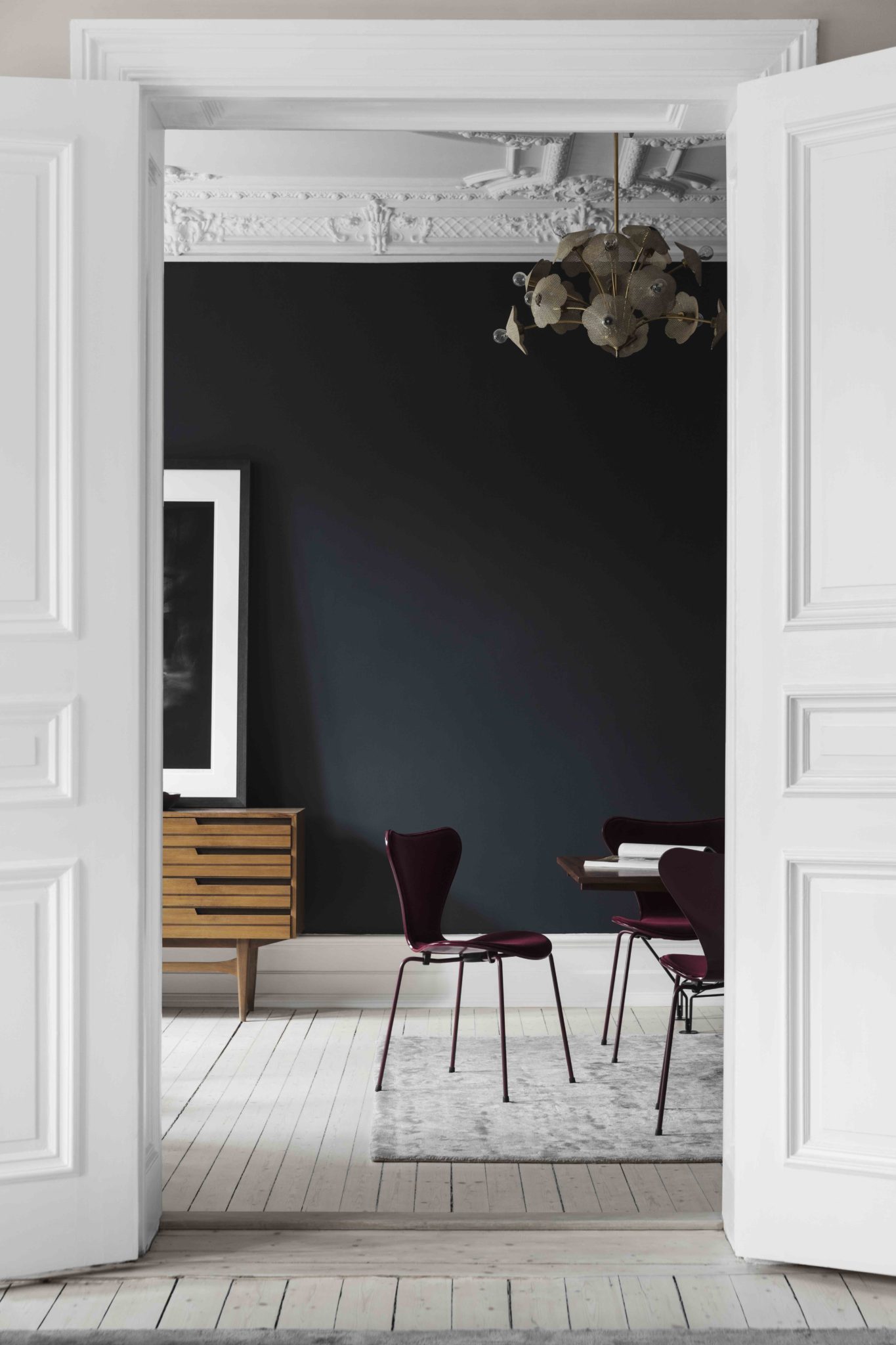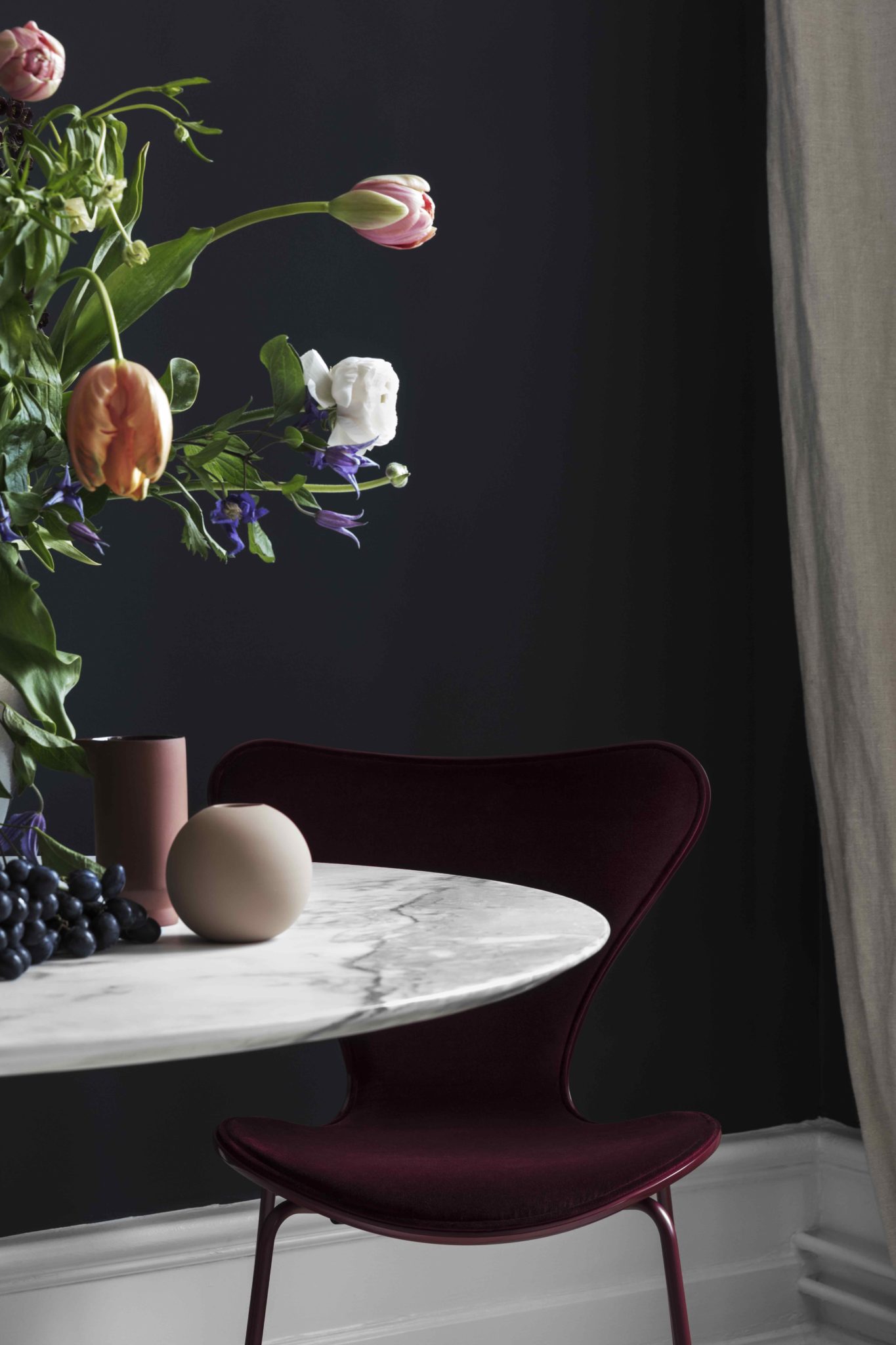 De fantastiska sjuan-stolarna klädda i sammet tolkade av Lala Berlin passade som handen i handsken i den vackra lägenheten vi lånade av By Mouche.