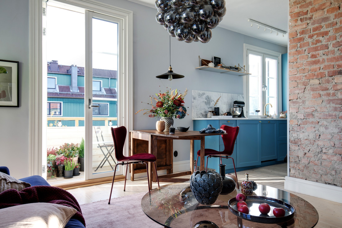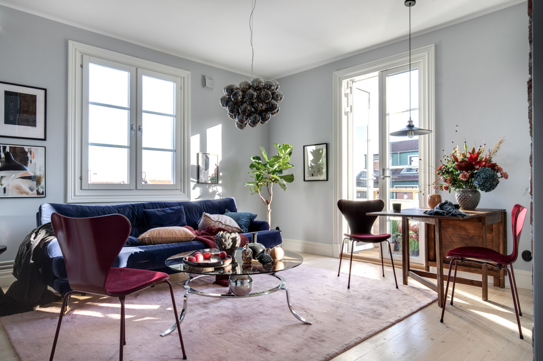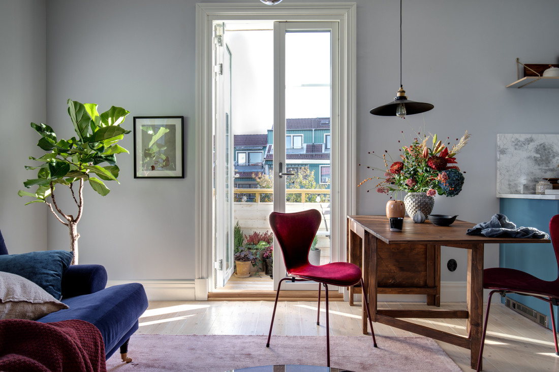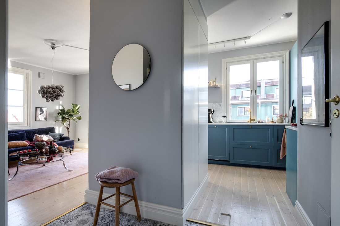 Väldigt charmig grund i denna tvåa i Masthugget som passade för en färgstarkare styling.