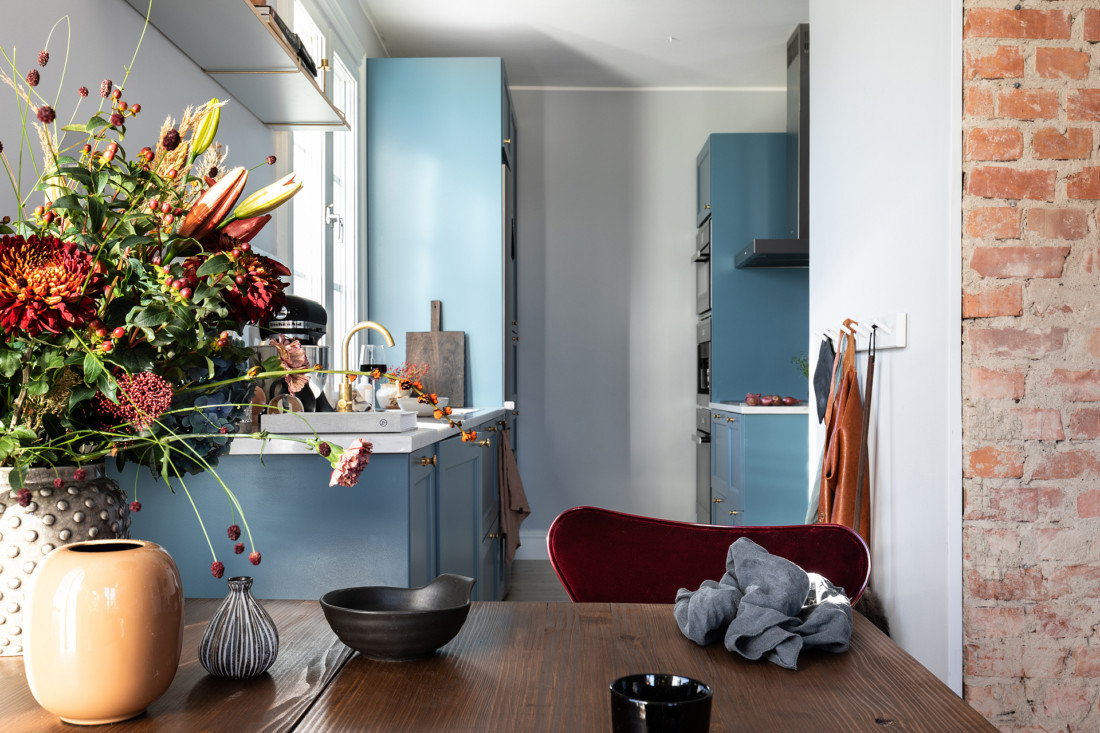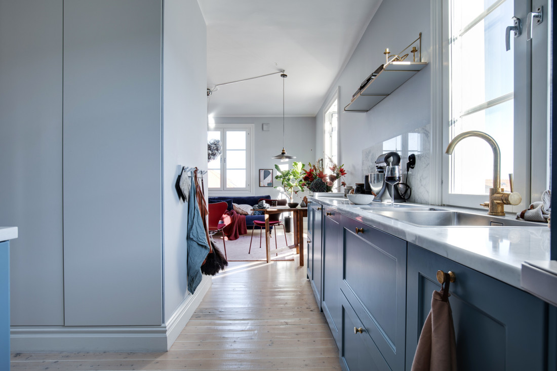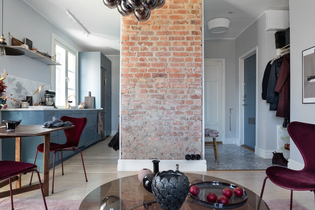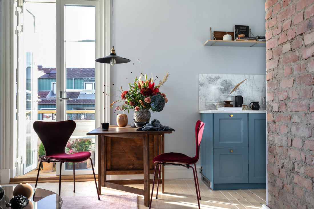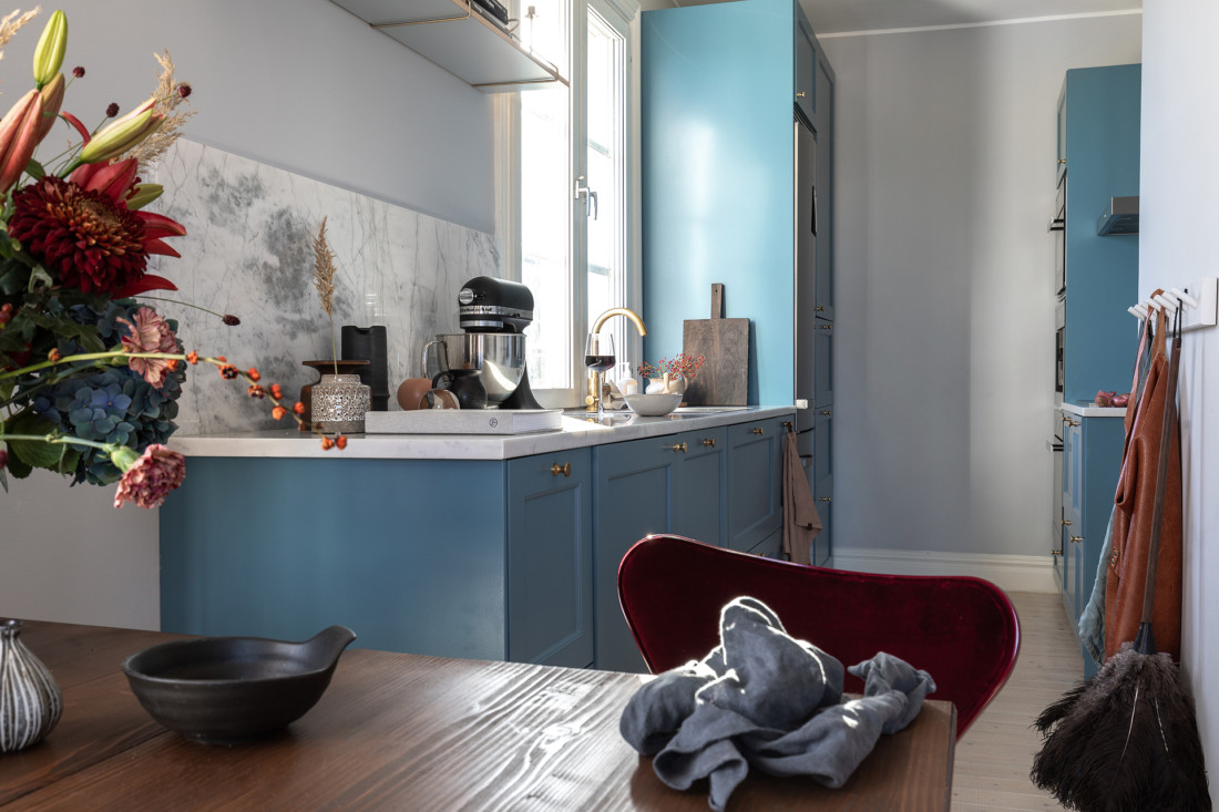 Väldigt charmig grund i denna tvåa i Masthugget som passade för en färgstarkare styling.